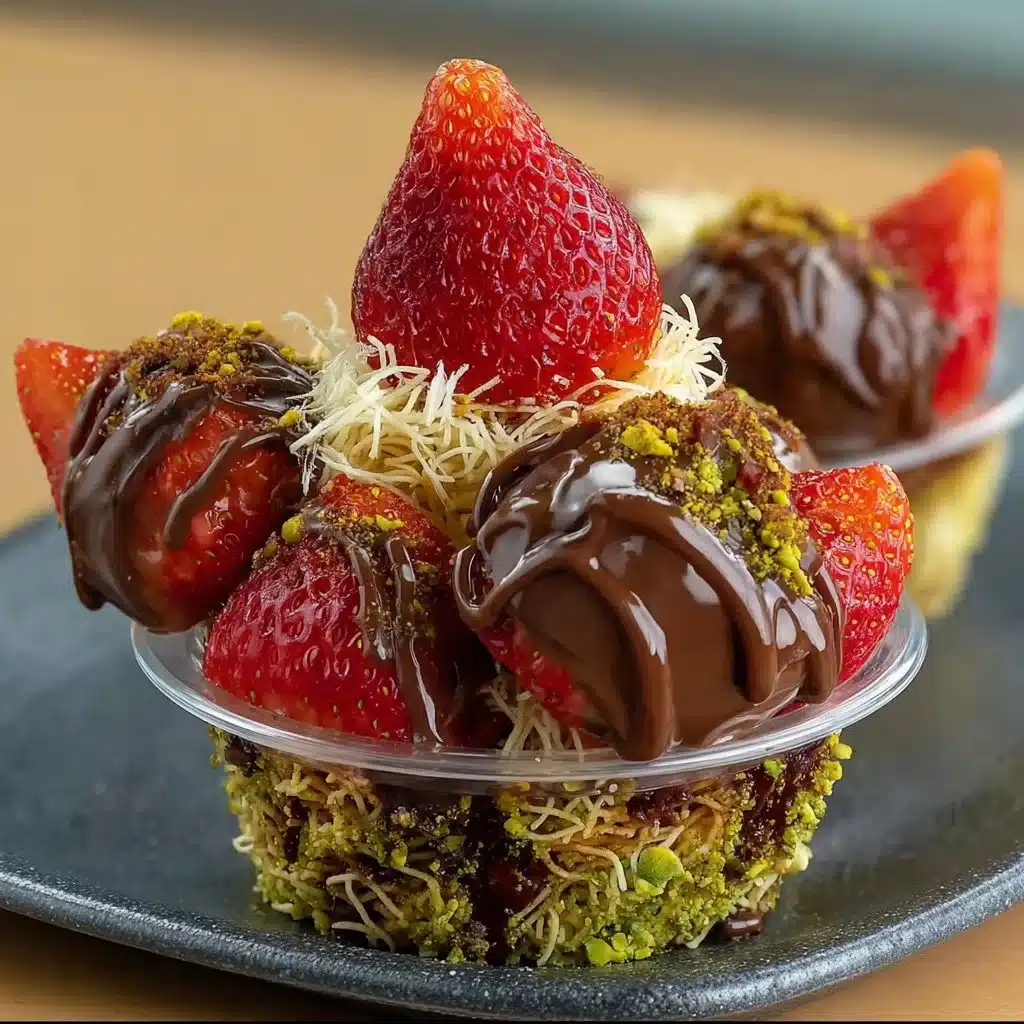 You will toast kataifi to add crunch, mix in pistachio paste for flavor, prepare fresh strawberries for brightness, and melt Nutella for the creamy chocolate layer. Layer the cups with strawberries, kataifi mixture, and melted Nutella until each cup is full. Chill so the flavors marry and the textures settle.
