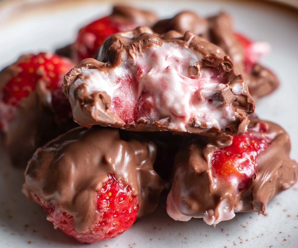 These clusters are about balance. The tang of Greek yogurt cuts through the sweetness of strawberries and chocolate. Coconut oil thins the melted chocolate so it coats cleanly and sets shiny. Freeze the base solid so the dip does not turn to mess. Little touches like a pinch of sea salt lift the flavor and make each bite sing.