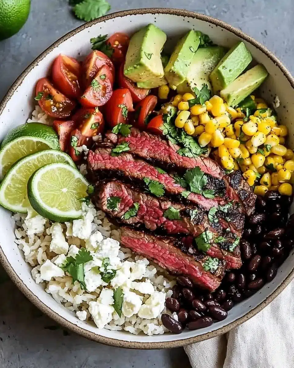 It pleases different palates at the same time. Kids often pick the rice, corn, and avocado and leave the cilantro for later, while adults reach for the tang and bite of the steak. The bowl keeps cleanup easy, too. A single sheet, a skillet, and a pot will get you to the table with less stress and more flavor.