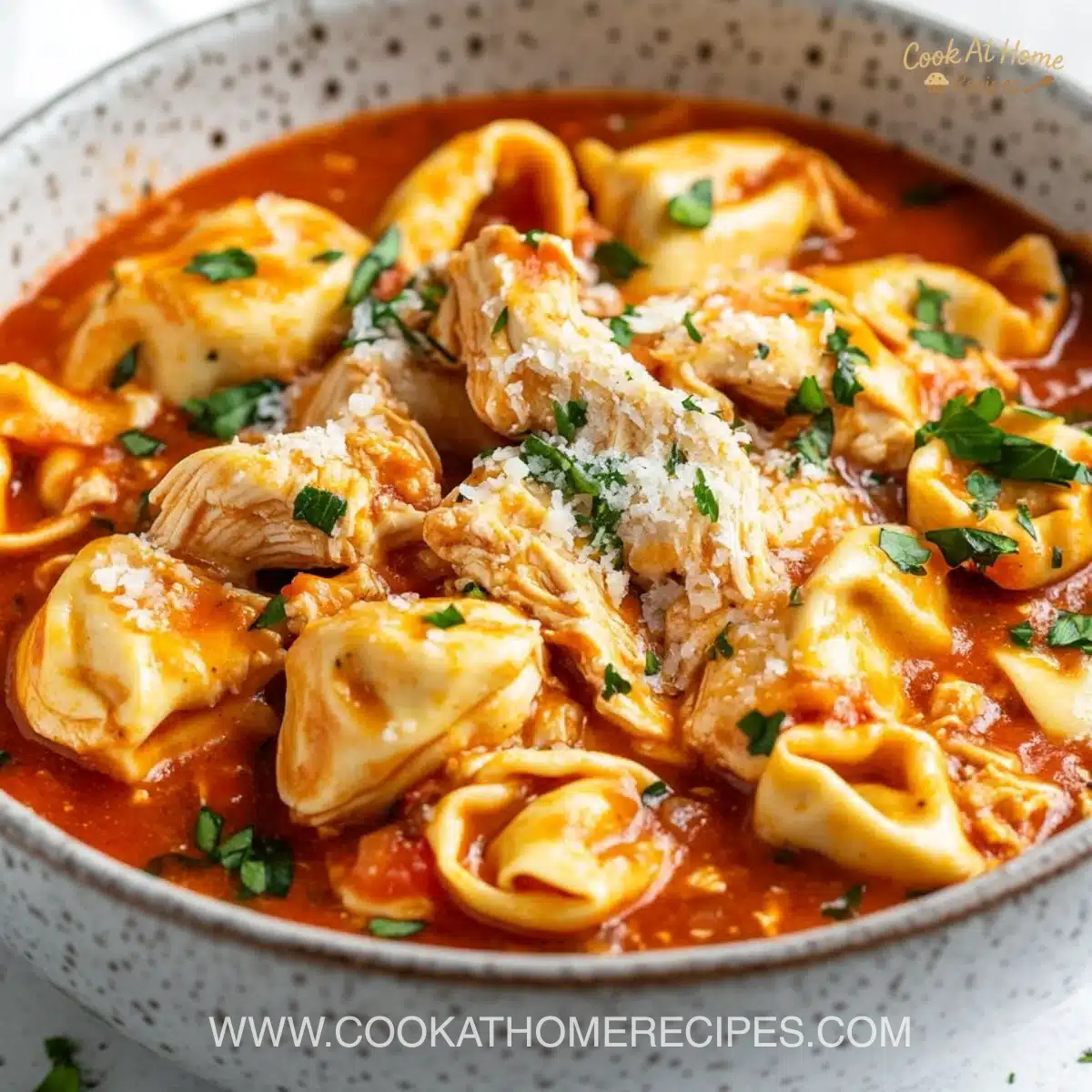 Look for these cues as you cook: when the chicken pulls apart with little resistance, it is ready to shred. The sauce should smell round and tomato-forward, with the herbs standing up but not fighting the cream. The tortellini will be a soft, pale gold when done and will float gently in the sauce.