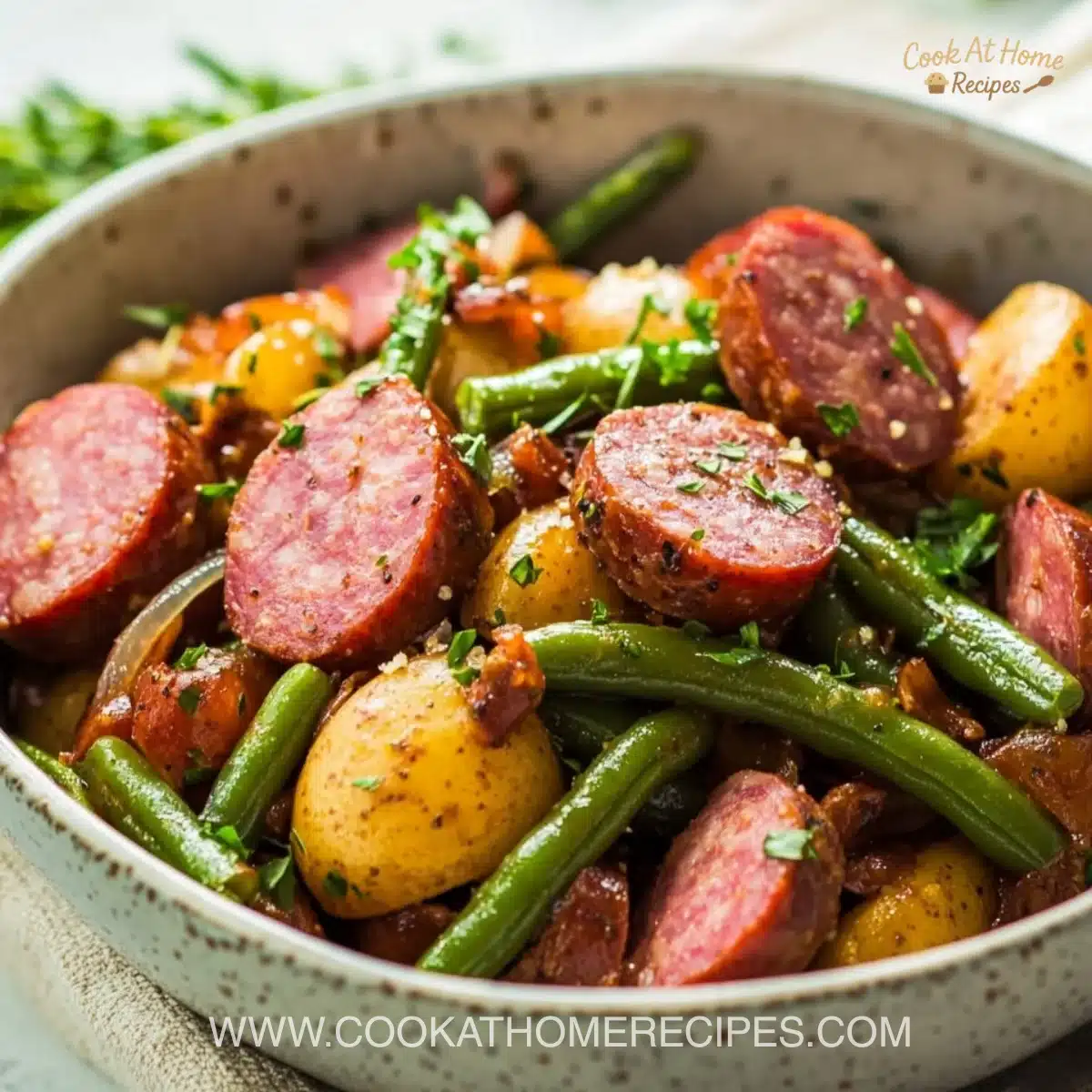 Kids love it, adults love it, and everyone’s happy. The vibrant colors of the fresh green beans against the hearty sausage create a feast for the eyes, and a combination of flavors that’s hard to resist. My kids always sneak back for more, and I admit, I do too. It’s easy to make, easy to serve, and even easier to enjoy.