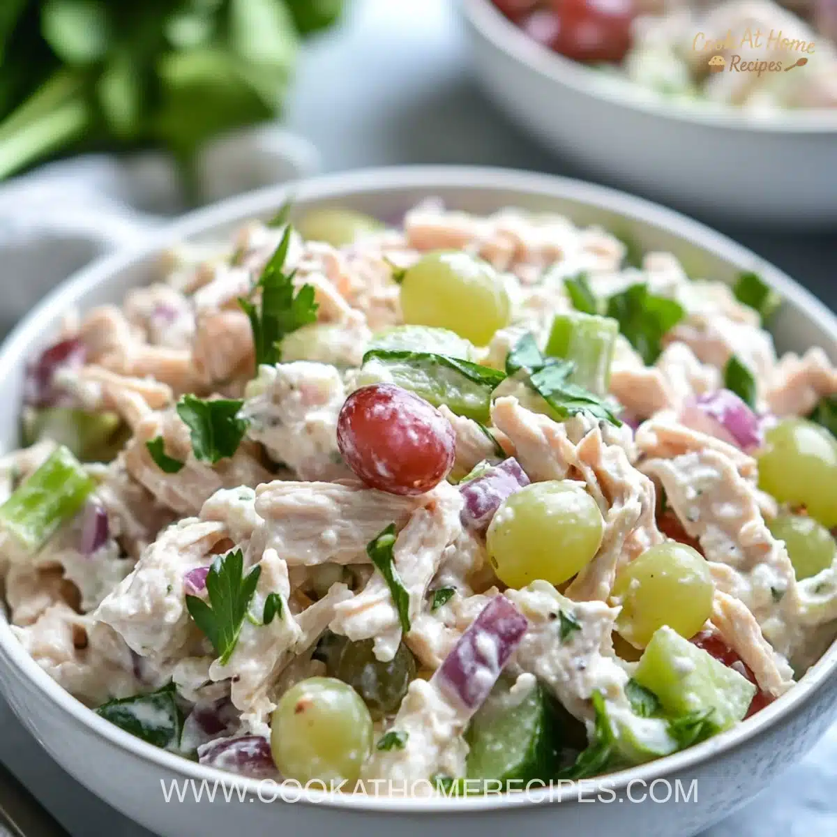 Color and texture play together here. The sweetness from grapes, the crunch of celery, and the snap of red onion keep each bite interesting. It is the kind of dish that sits well on the table and disappears fast because everyone finds their favorite part.