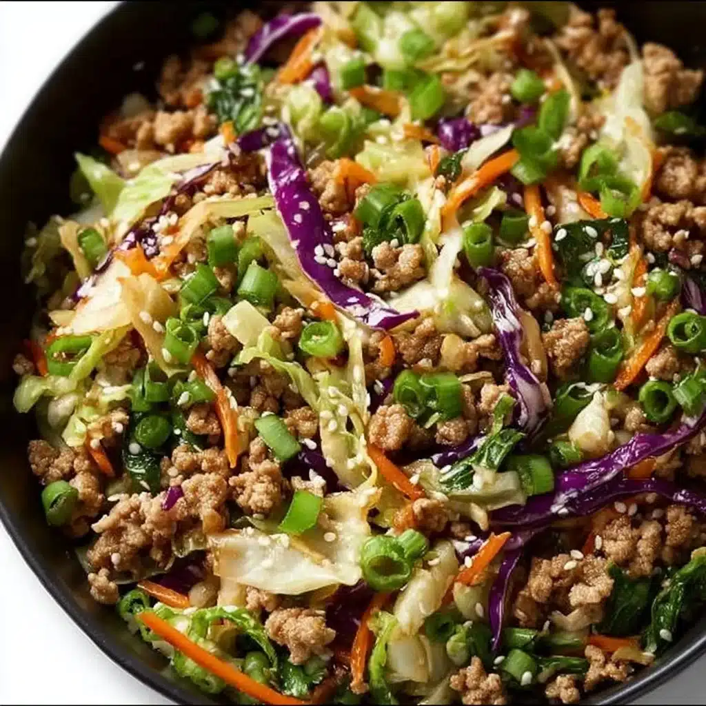 This recipe is forgiving. If you have extra carrots, toss them in. If you only have ground chicken, it will be just as lovely. The texture cues are simple: you want browned meat, tender cabbage that still has color, and a glossy sauce that clings to the ingredients. Those hints tell you this High Protein Egg Roll in a Bowl is ready to sit at your family table.