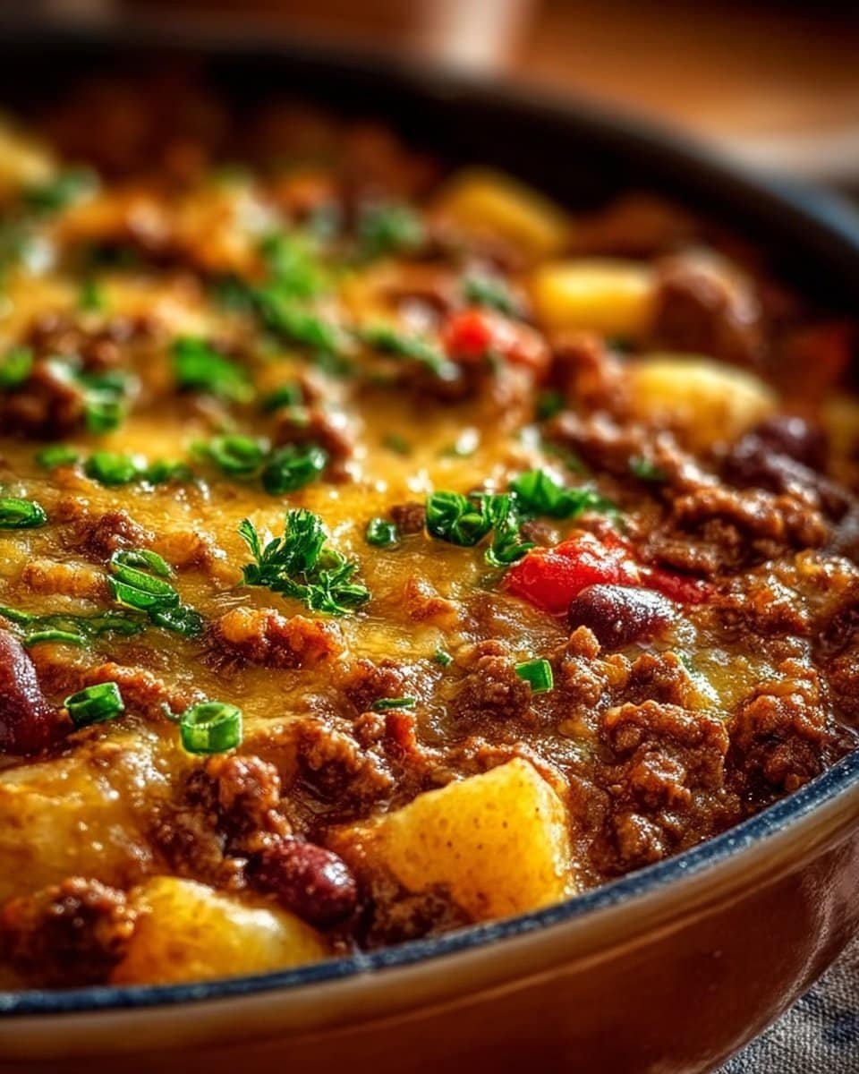 Swap the ground beef for turkey or a lean pork for a lighter version. Use sweet potatoes cut into small cubes instead of tater tots for a gluten-free, less processed option. Add a can of green chiles for more heat, or stir in a cup of salsa verde for a brighter finish.