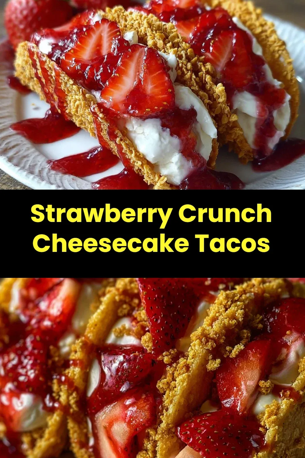I hope you’re as excited to try these Strawberry Crunch Cheesecake Tacos as I am! Customize this recipe to fit your mood or pantry, and let it be a canvas for your creativity. Don’t forget to share your results with me—I’d love to see your masterpieces! Please share, rate, and comment to spread the joy of cooking.