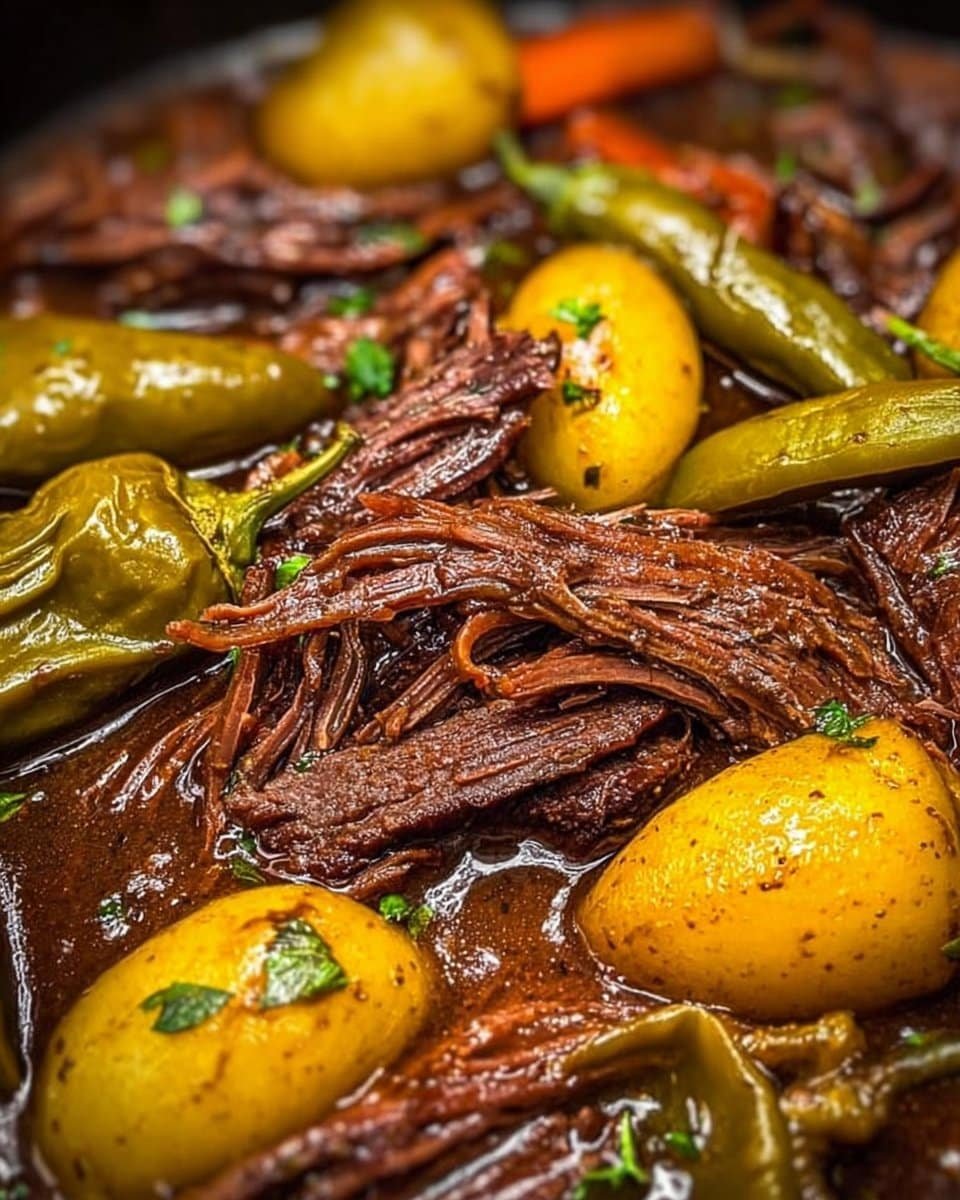 This dish is reliable because it leans on texture and timing more than fancy technique. A well-marbled 3-4 pound chuck roast gives you fat that slowly melts into the meat, keeping every forkful tender. The ranch and au jus packets act like a flavor shortcut, and the pepperoncini add a lively note that stops the dish from feeling heavy.